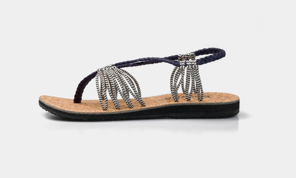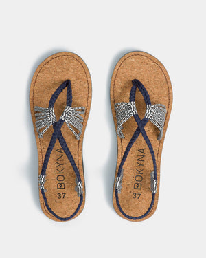 Laat je van je wilde kant zien met de nieuwe Houtskool Zebra Bokynas! Draag deze super comfortabele zomersandalen met een gemakkelijke frisse outfit om de ongetemde marineblauwe en houtskoolkleurige geweven bandjes te benadrukken.