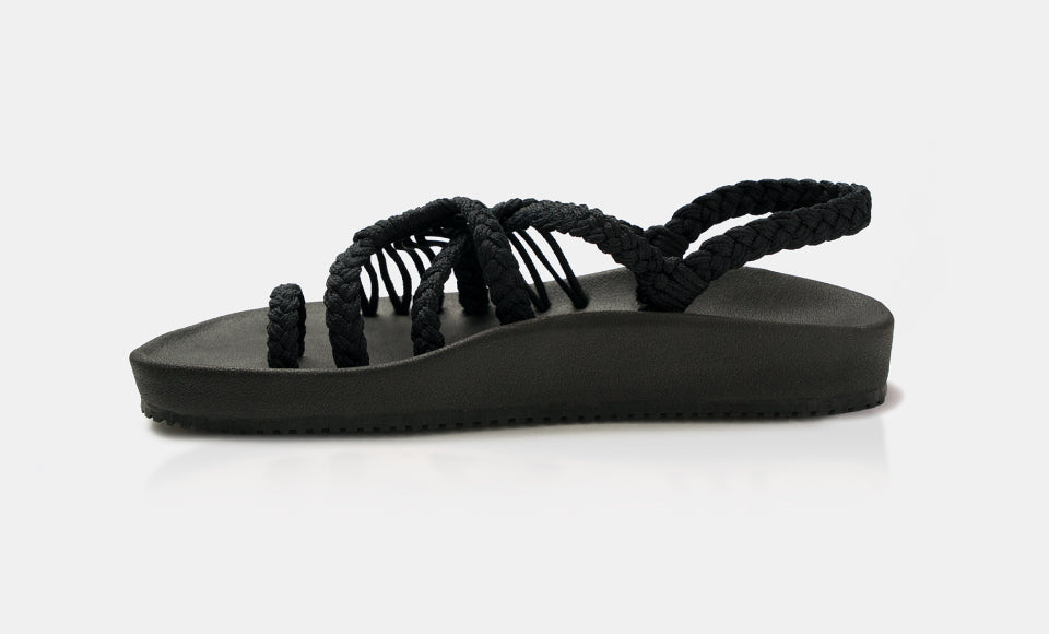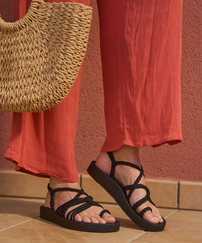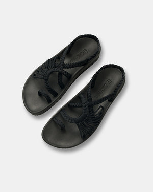 Voeg een vleugje tijdloze elegantie toe aan elke outfit met de zwarte Elevate-sandalen. Dit stijlvolle paar sandalen met voetboogondersteuning zullen je hart veroveren met hun gevlochten riempjes en een diepzwarte tint die past bij elke gelegenheid.