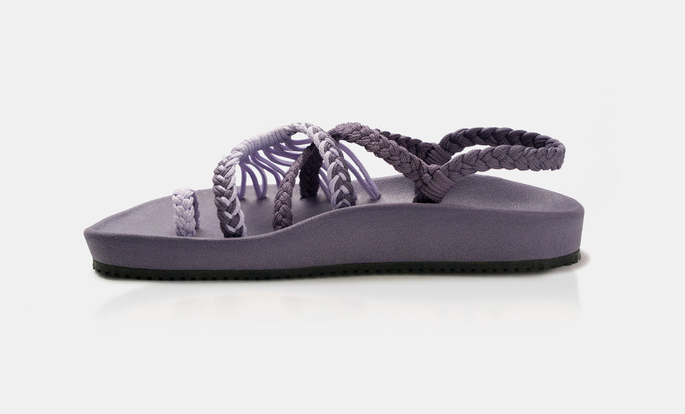 Wikkel je voeten in de dromerige paarse Elevate-sandalen met voetboogondersteuning. De paarse tint voegt een vleugje romantiek toe aan je look, ideaal voor dagen waarop je kleur wilt brengen in je outfit zonder te overdrijven.