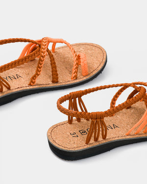 Handgemaakt tot in de perfectie met lichte en donkeroranje accenten, afgewerkt met een kurkzool. Deze zullen je zeker goed staan!