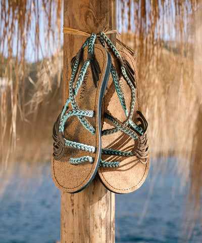 Turquoise - Onze bestseller! Een geweven vakantiedroom van zeegolven en heldere luchten. Met uw Bokynas bent u direct op vakantie en maakt u van elke outfit een blikvanger.